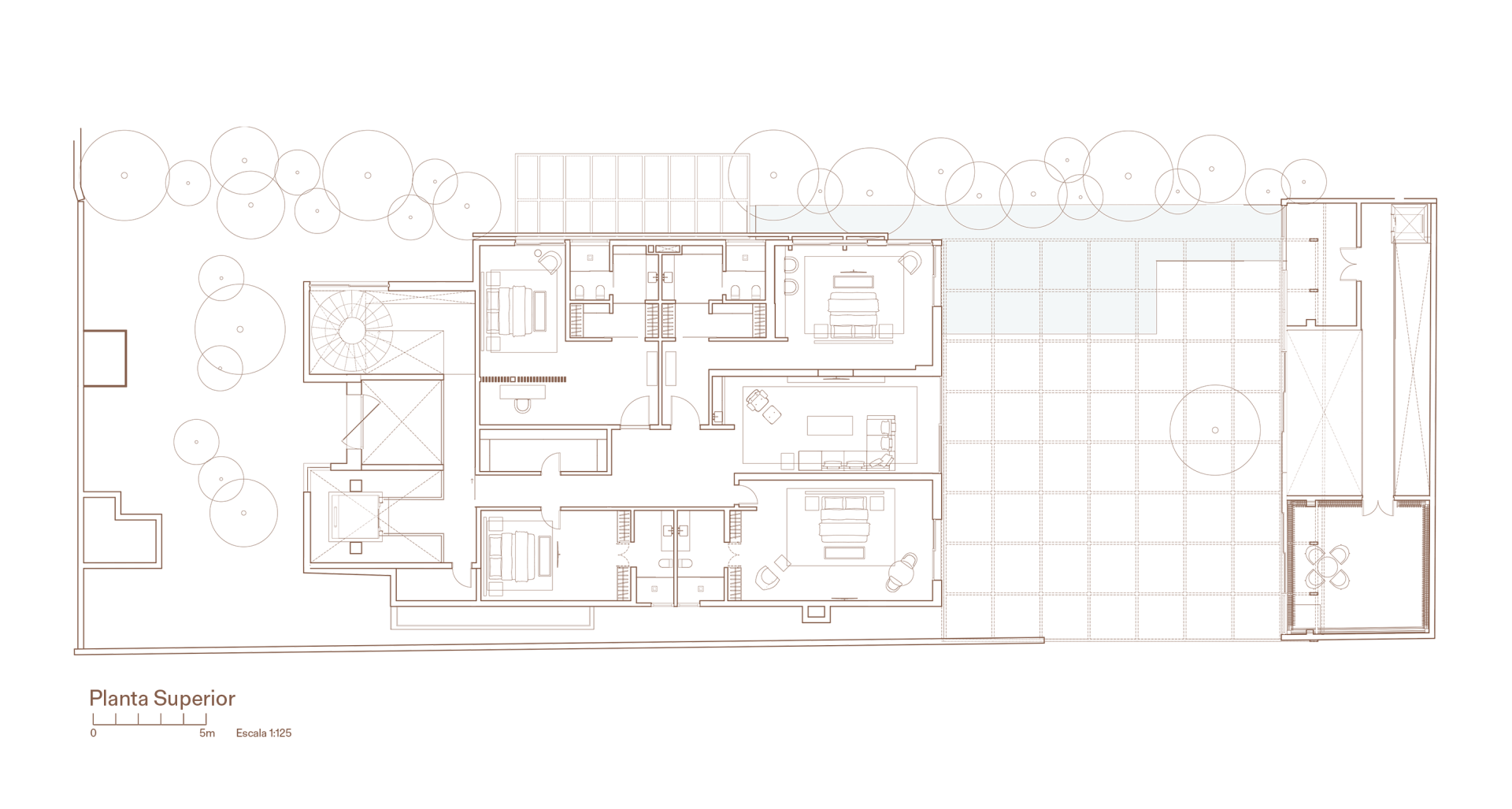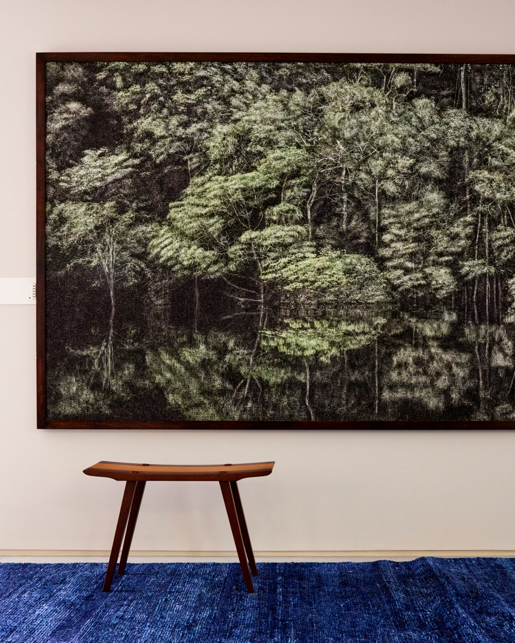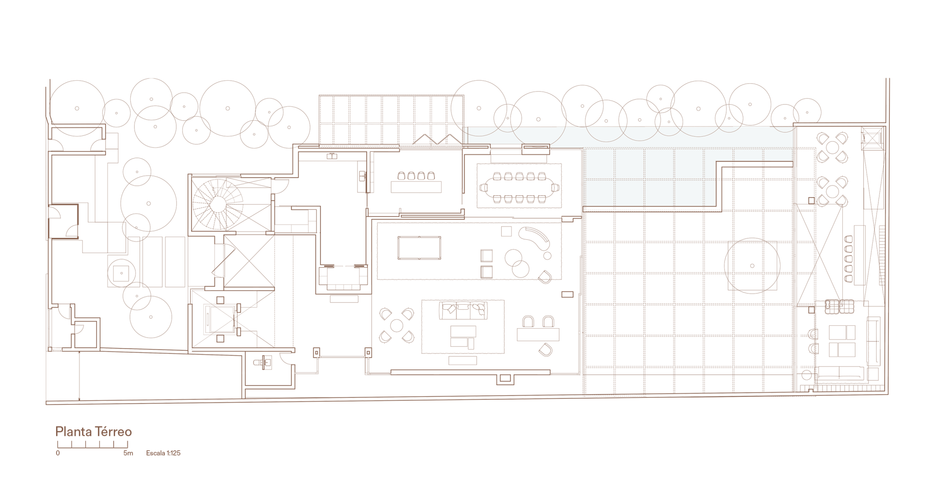 The delicate equation between sophistication and irreverence permeates the interior design for this residence in São Paulo. With integrated rooms, variations in ceiling height and a large sliding glass door that connects the rooms to the external area, the P555 takes advantage of the breadth of the internal spaces to create a true gallery for works of art, as well as Brazilian and international furniture. Large monochromatic planes, shades of gray and the noble dark woods of the furniture consolidate a sober and elegant base on which some vibrant colors of contemporary and modern pieces emerge.