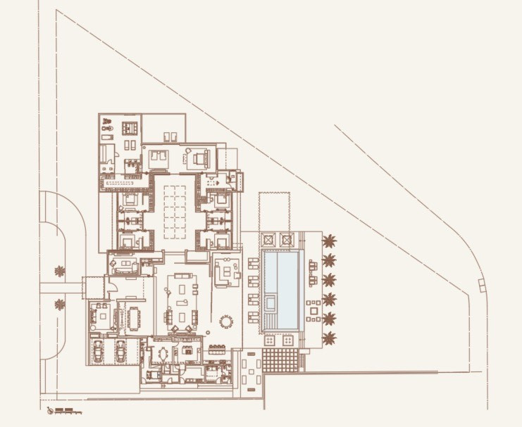 The dialogue between the comfort of the domestic space and compositional rigor is also represented in two architectural elements central to the arrangement of the house, symbolizing the two compositional poles of this apparent dichotomy between water and fire. The former is represented by the imposing fireplace: a prominent volume in the living room that opens up to the backyard; the latter is embodied in a large water mirror that runs longitudinally through an entrance hall bathed in natural light.
