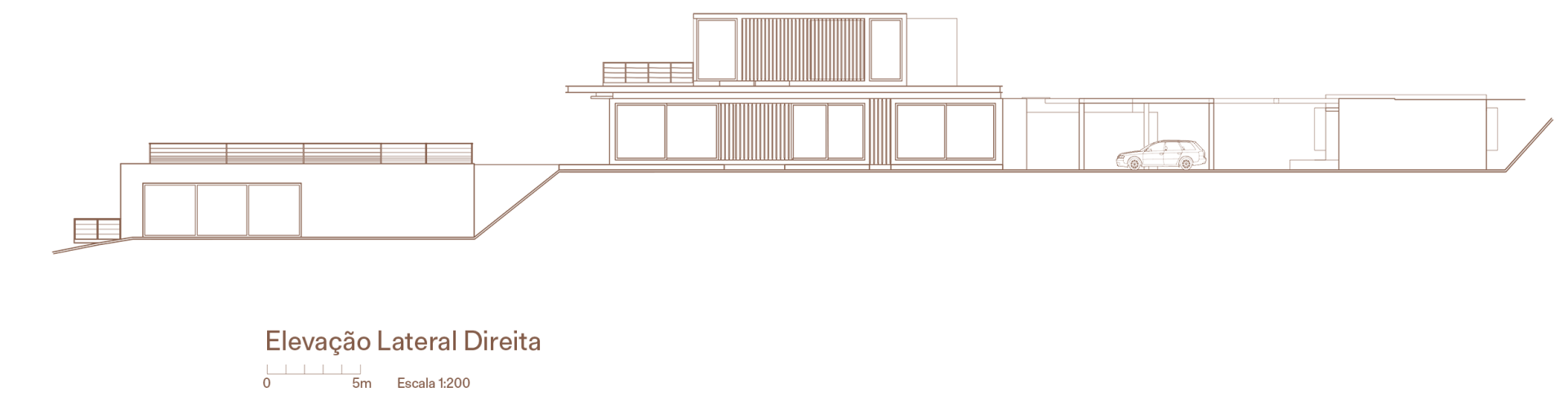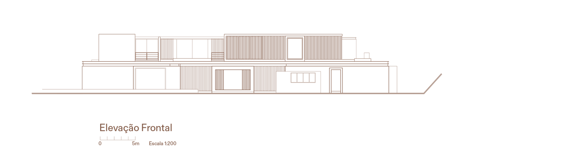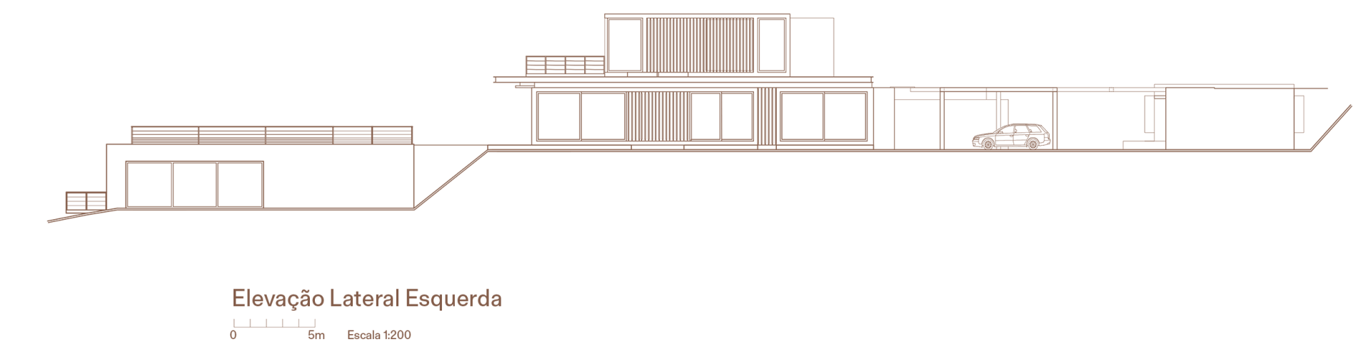 There is no formal exuberance: the design is very sober, composed almost exclusively of straight lines. On the ground floor, the large internal living area is integrated thanks to the independent concrete structure. Above it, the second floor displays an even more delicate construction: a glass pavilion, marked only by the rhythm of the slender metal structure and by the verticality of the wooden sun-shades that secures the privacy of the bedrooms.