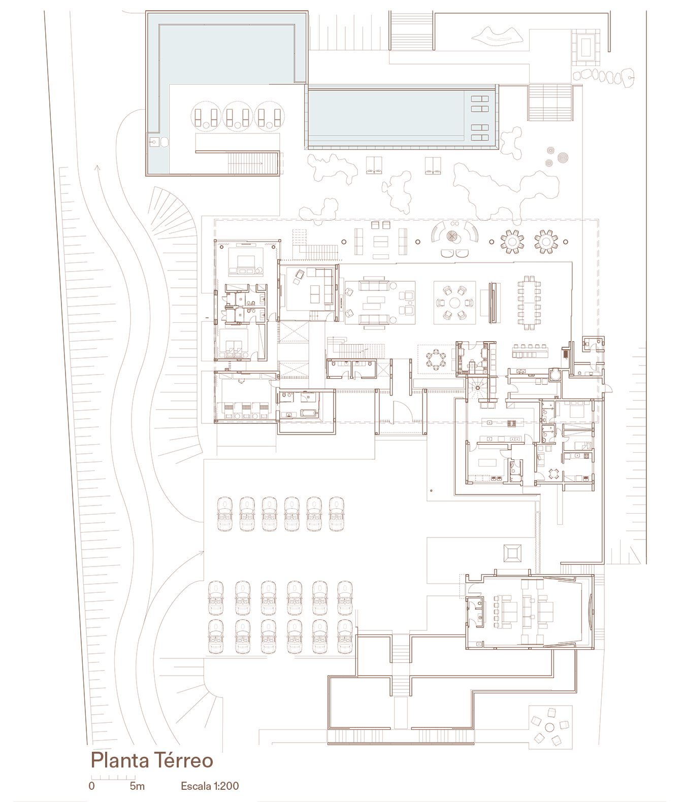 Located beneath the street level, the predominant horizontality of the P46 house gives it an introspective character, as if it wishes to withdraw from the exterior movement to fully dedicate itself to its relationship with the vegetation and the lake that surrounds it.