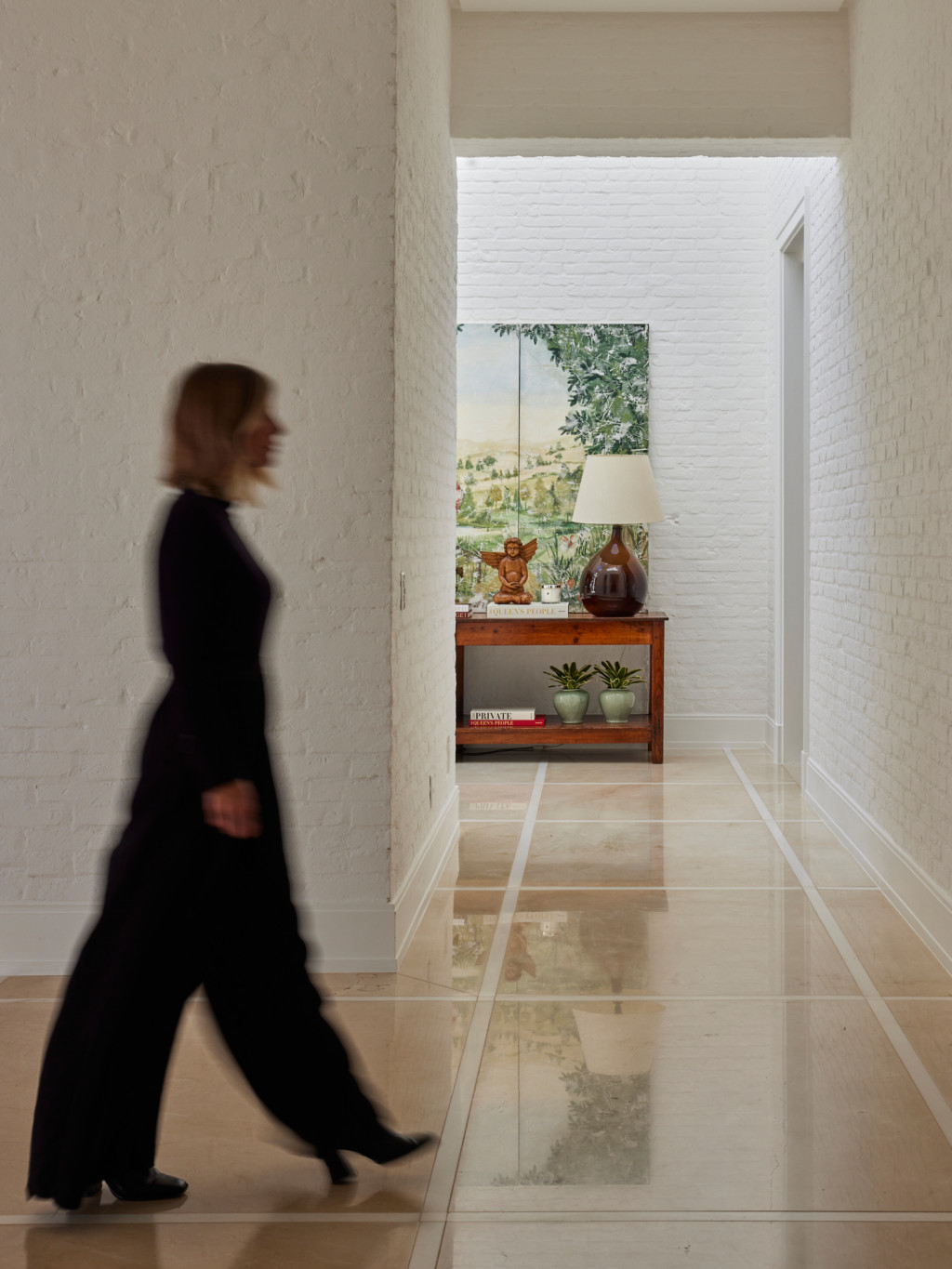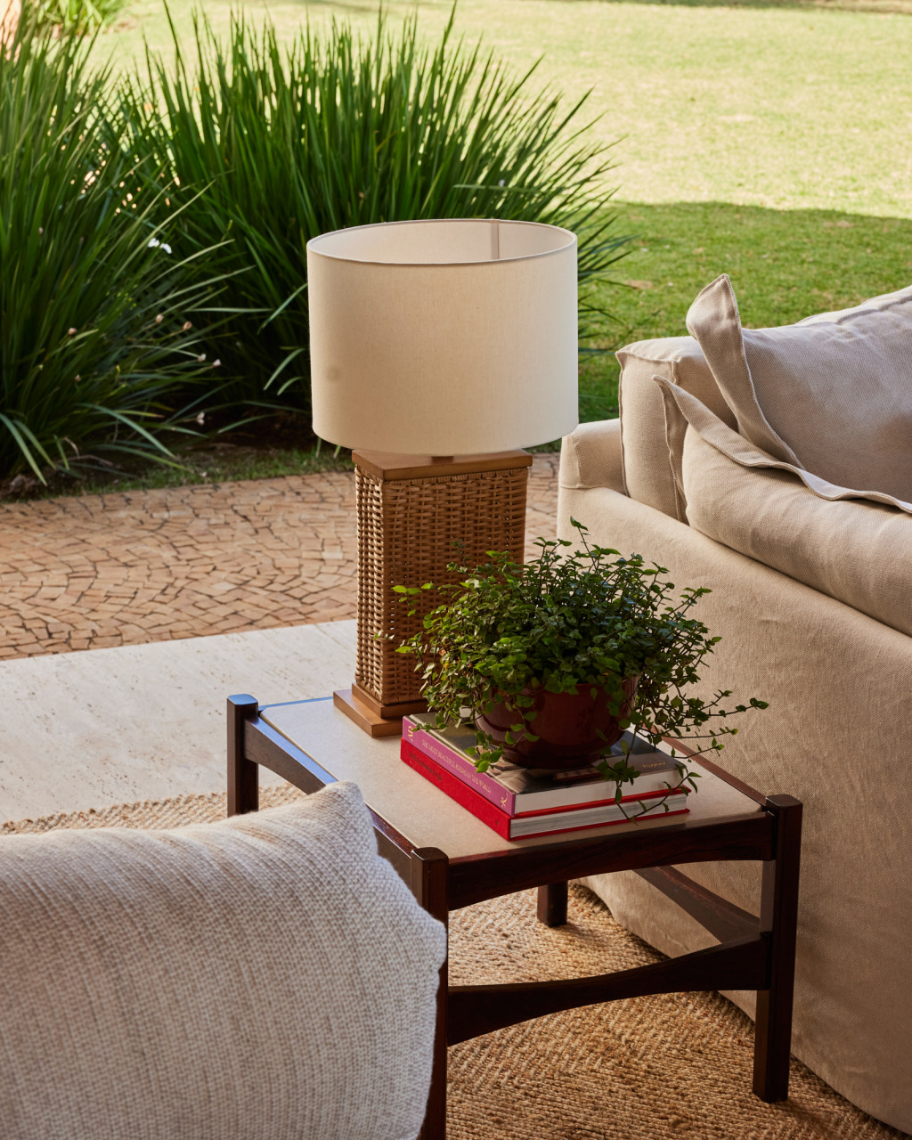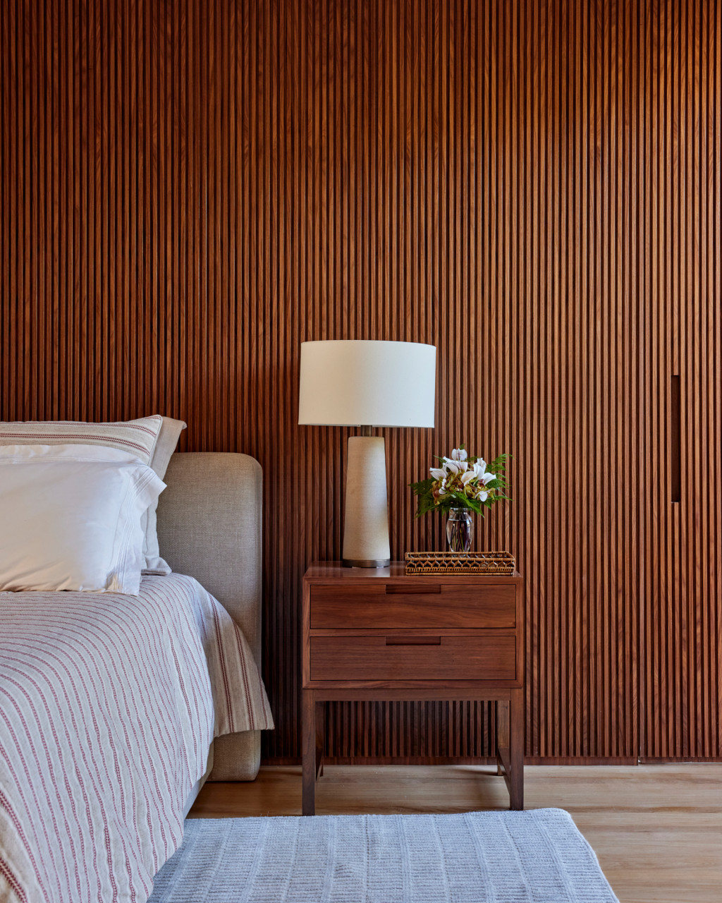 O projeto de interiores assume papel central. Materiais e mobiliário foram escolhidos com precisão para destacar a experiência do habitar. Tons terrosos, madeira e poucos elementos de cor intensa, como as poltronas Nido de Paola Lenti, revelam um arranjo meticuloso, pensado para que o calor da vida no espaço sobreponha a frieza do desenho.